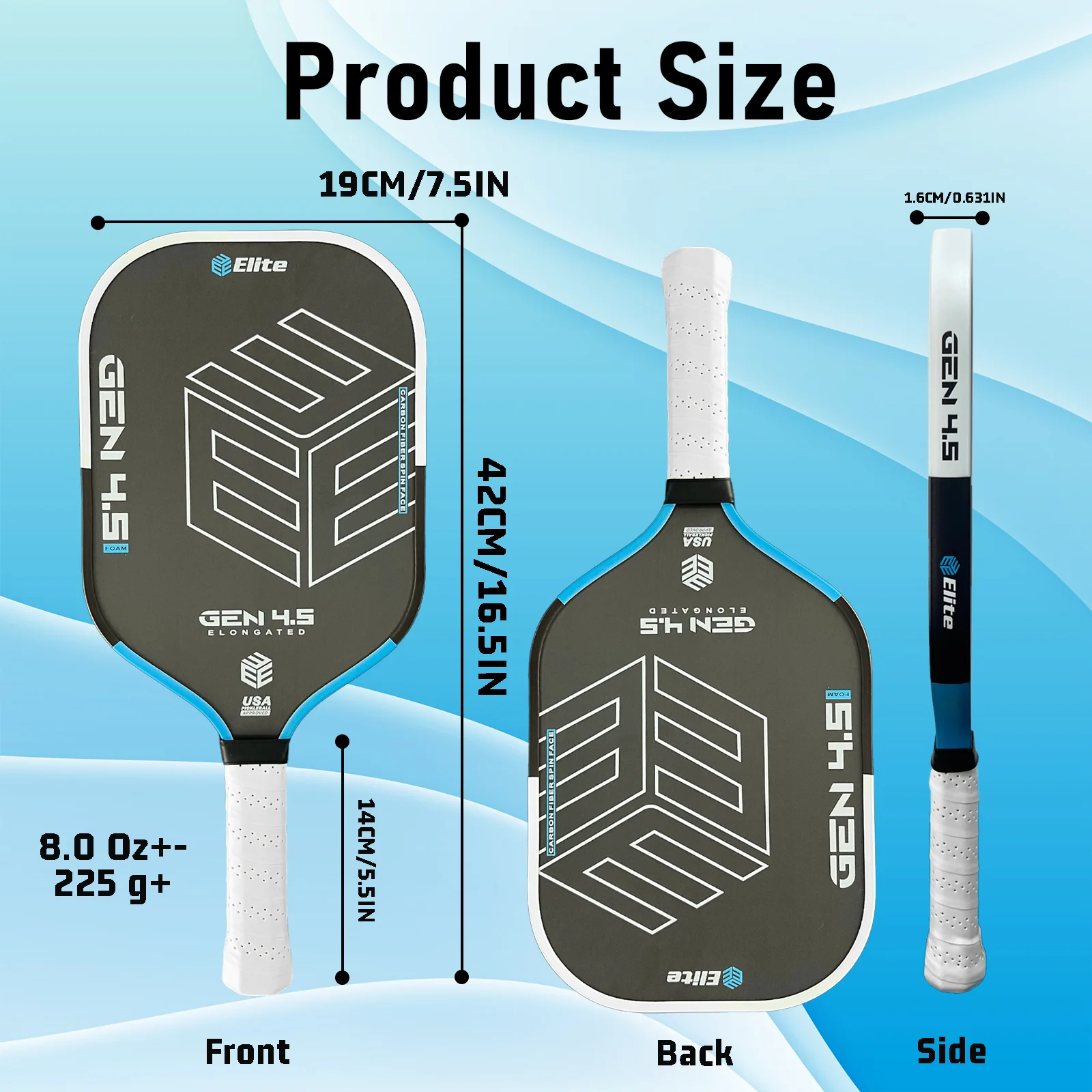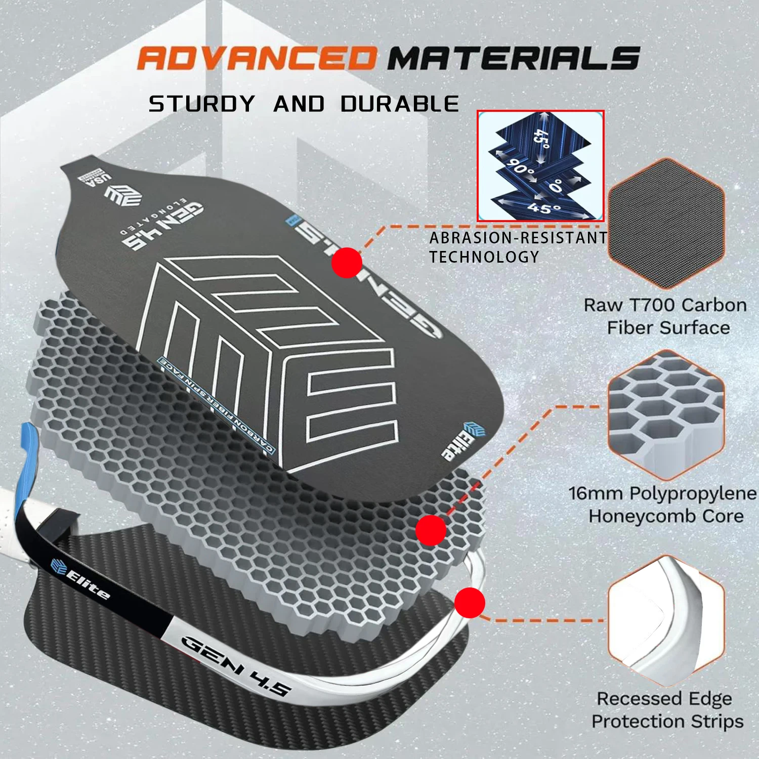 Elite Pickleball Paddle - Carbon Fiber Structure Cold Pressed Anti-Slip Grip PP Honeycomb Core High Strength Friction Durable Ed