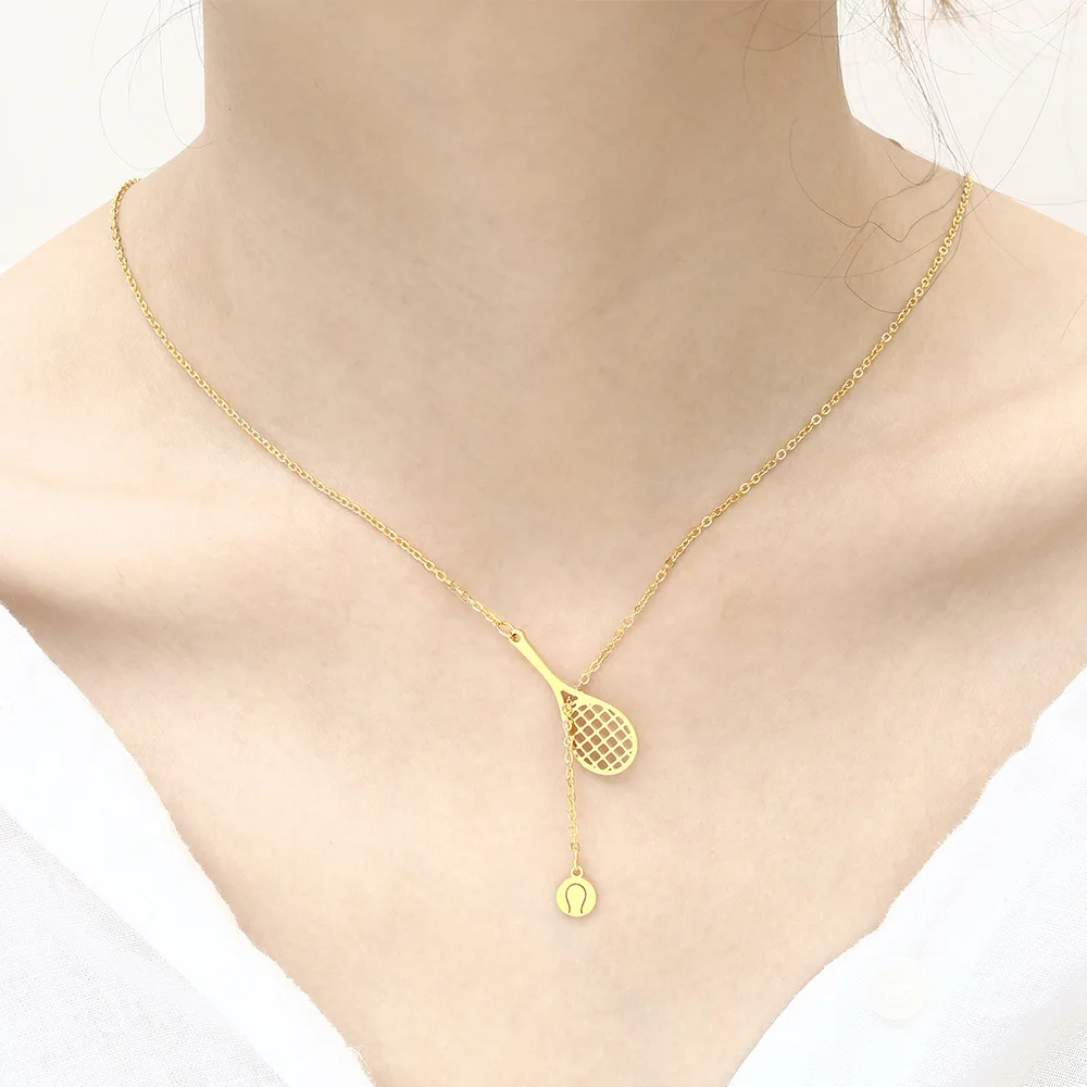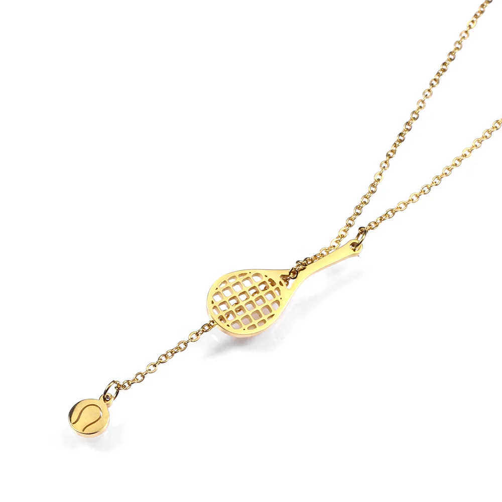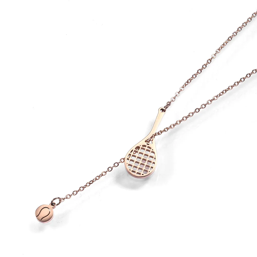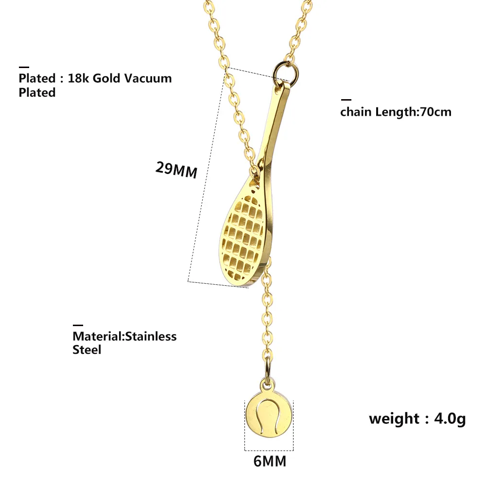 Keywrods: Tennis Necklace Y Necklace Chain Tennis Racket and Ball Pendant Heartbeat Sports Jewelry